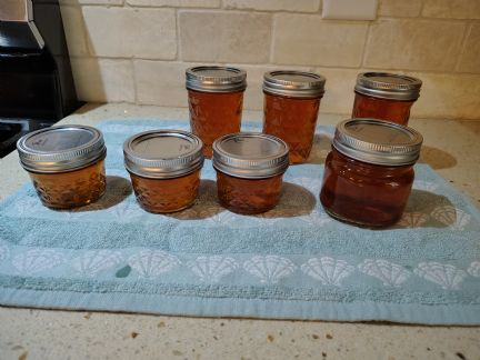 Posted - Oct 13 2025 : 12:30:55 PM Latest canning project is for Christmas gifts. Trying the recipe for Apple Thyme Jelly. Makes 4-ish half pints. This should fit into my jam maker. Uses apple cider and I love making regular apple jelly from our local organic produce guy. He makes fresh cider every fall....until he runs out! adding thyme, the jelly goes on pork, cheese plates, and toast! Has anyone tried it?