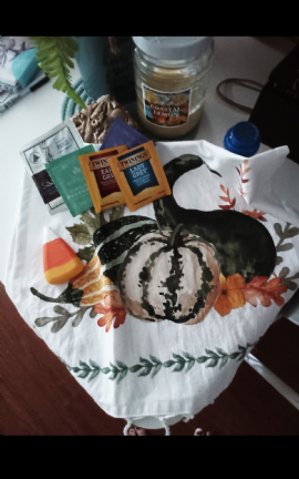 Candy I received your box in record time. Thank you for the crochet hanging towel and all of the other fall decor. I am now ready to decorate!