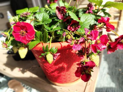 Wow it has been a long time! 3 weeks of back pain and I haven't done much of anything. Time for a new mattress for our bed. I planted 50 onions today, 45 to go. Here is a photo of the strawberry container hubby bought me. : )