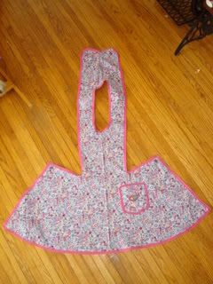 Thanks for the comps on that apron. I made it for a friend of mine! It only took 25/30 minutes! Seriously...it is the everyday apron. My friend made dinner for us after my baby was born, and I have been holding the dish hostage ever since...16 months! So I returned it to her at a picnic last night disgguised as a covered dish...apron, potholders, strawberry and tomato pin cushions..covered in plastic wrap. it was so cute! |