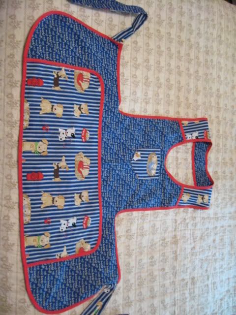 I have that doggy fabric. I made a couple of kid's aprons recently and I am currently making a cobbler apron with the same doggy fabric. I thought that this fabric was so darn cute.