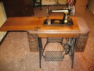 the treadle machines are absolutely gorgeous. I had one as a teen..oh back when I was about Naomi's age..and bought it for only like $15..it was complete with the cabinet too. Wish I still had it. I needed money for a car payment one month and my dad bought it off of me..then wound up selling it. hind sight..arggh. Anyhow..they are very pretty. Always enjoy peeking in here and seeing what you gals all have been up to.The machines you find..the aprons you create..lots of fun.And I chuckle over the fun banter that goes back and forth. I used to sew back when Naomi was a baby...but haven't sewn anything in oh gosh about 7-8 yrs now. (yeah I know..fer shame fer shame) Maybe I'll get back to it soon. But I doubt Naomi will want to share her sewing machine though.:0)
