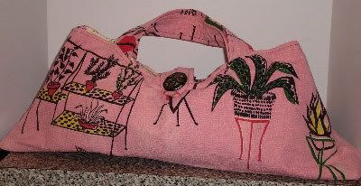 Here's a purse I gave to my DIL for her birthday. I made it from a piece of 1950's Barkcloth.