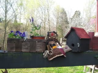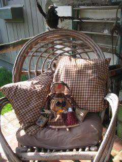 finally, Amy Joy walked slowly back to the front porch .. sat herself down against the cushiony pillows .. and is doing a little 'sewing' .. but with eyes half closed .. as Blackie sings a morning song.
