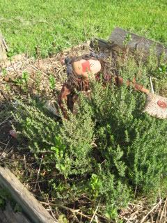 The aroma of fresh growing herbs reached her .. and she wandered over to the herb garden (which, again, tickled her fancy .. as she realized they were planted in an olde pig feeding trough!) .. her favorite is THYME