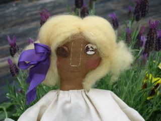 PANSIES are her favorite flower and PURPLE her favorite color .. she has found a lovely purple silk ribbon and tied a bow in her hair.