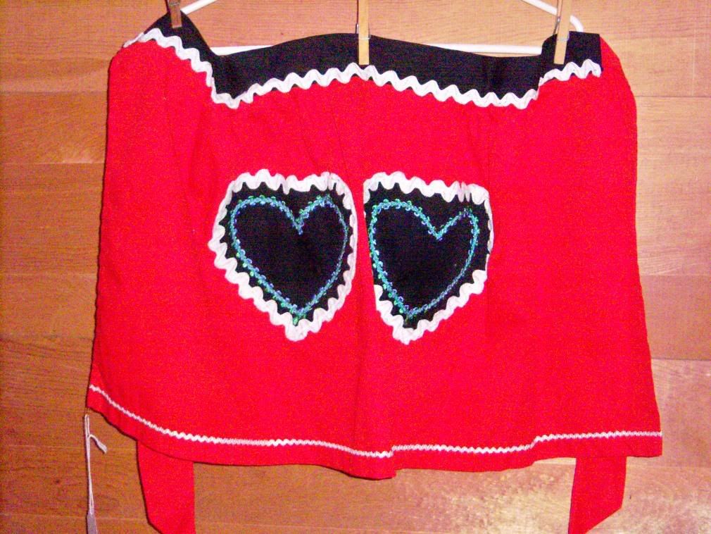 2. Red apron with heart pockets. Pockets are not that close together-they really are on left and right-apron just wouldn't stretch out far enough.
