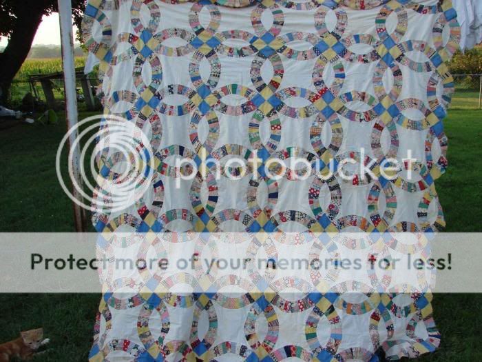 Thanks, Yes it is pretty. Unfortunately I don't know how to quilt either. It amazes me the hours they put into even piecing a quilt much less quilting it. I love the Double Wedding Ring pattern too. It's always been my favorite.