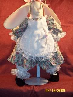 Thank you Nancy and Melody! I think they are much cuter in person so you can see the details better. I started using iron on interfacing in the ears because they have a tendancy to fold in on themselves. I use lots of ribbon and lace. By the way these dress patterns are made for the 18" American girl doll type but they fit the bunnies too.