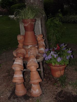 Here is an old clawfoot tub that I covered with broken pottery. Last year it had was filled with Kentucky pole beans using the wooden window frame as a trellis, with bright yellow and orange marigolds in front. I'm thinking of growing morning glories in it this spring. [IMG]http://www.maryjanesfarm.org/Snitz/Images/DSCN0410.JPG[/IMG