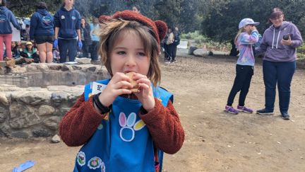 "Fallon shared her favorite memories of scouting adventures commemorated on her tunic as she bridged to the next (brownie) level of scouting.
