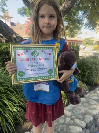 This event was held at a Build a Bear outlet so she left with a stuffy with its own smock and brown vest. She has fully briefed "Sunday" the stuffy on everything it takes to be a scout."