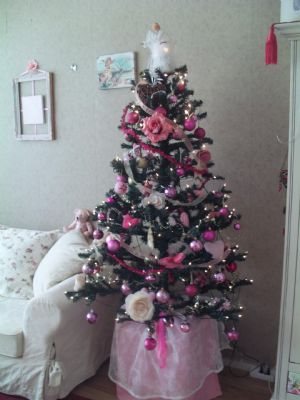 Wouldn't that be nice, to share our trees here?? Here is mine, I put it up yesterday and I like it a lot. Even Pinky likes it (I think) , she is SO good. She doesn't jump in it, didn't break anything...in fact doesn't give it a second look even, YAY!!