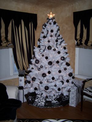 Marian, That is so pretty! I am not putting up a tree this year, but I will post a picture of my tree from last year. I am just being simpler this year, and I will be gone for a week before Christmas. .JPG) I thought I would try a black and white tree, even the wrapping paper was black and white!