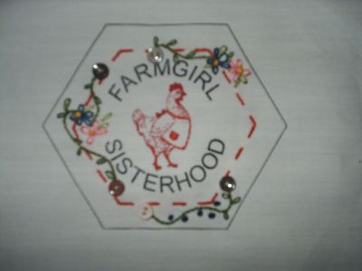 That's adorable...I haven't received mine yet...I'm 57 and I've been shopping at thrift stores and consignment shops for a denim jacket to embroider on so I can proudly wear my badge...lol! Teree