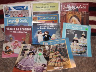I will trade for vintage hankies or linens ( old embroidered doilies or floursack dishtowels) There are 13 , all but 1 is crochet. The 1 is sewn clothes.
