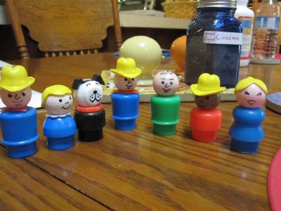 I have 7 of them that were part of a farm set. Does anyone have something they would like to trade for them? I like home made soaps, Fiesta dishes, squashed pennies, cobalt bottles for my kitchen window, vintage scrapbooking misc. for cards, old rubber stamps, or just plain surprise me! I love those! Hugs, Mary