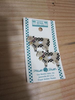 I have 5 sets of cow buttons by Debbie Mumm, new on the card...twobuttons per card...very cute. They are made of pottery or ceramic. Check the pic close.