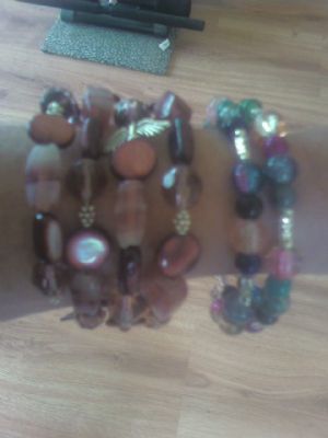 I have scrapbook items mostly. I also have some beads and wire for the wrap around bracelets like these I also have another bracelet similar to these I can trade..I also have some homemade earrings with beads... I am trying to get more things to barter with but since I just joined in July, I don't have much of a stash yet..lol...of homemade goodies...Or I could make a bracelet...just let me know...if these are things you aren't interested it, it's ok...I really want you to trade for something you REALLY want...who knows the person with soap might just pop in tomorrow...lol...have a great night and thanks for getting back to me
