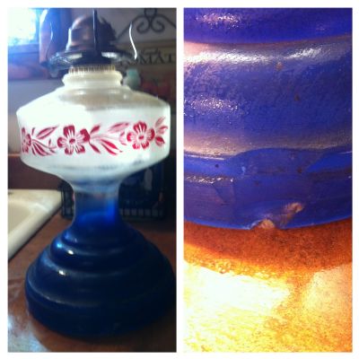This oil lamp was in the barn loft stuck in a box for years. I am guessing it is from the early 70's. I acquired it at an auction in the late 70's. It does have a chip in the base. I am sure the value isn't much but would make a nice addition to someone's collection.