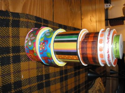 I have 7 spools of unused ribbon. The smallest size is 4' 100% Archival American Crafts Premium Ribbon (Lime Green - Happy Birthday) on it. Celebrate brand "Happy Valentine's Day" 4 yrds. Celebrate brand "Halloween" with orange owls 3 yrds OWL TAKEN and "Halloween" striped ribbon 4 yrds. Celebrate brand "Harvest" 4 yrds. Michael brand "large blue flowers in multi colors" 3 yrds and same brand "large pink flowers in multi colors"