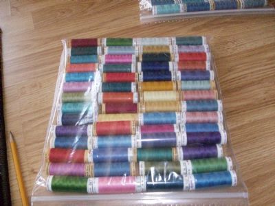 2 Gallon bags with approx. 60 sppols of Mettler's rayon and cotton quiltilng thread. Various colors. Most spools are 100% full, but some are used (I didn't count those into the total count) $30 per bag