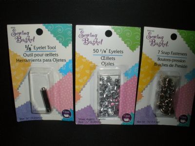 three items 1/8" eyelet tool 50 - 1/8" eyelets 7 snap fasteners