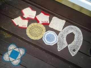 Some doilies/pot holders for trade or sale. These are well worn and have a few frays and stains - to me that means they were loved! I usually sell these for about a $1.00 each, but make me an offer. I am open for suggestions. I like tea, hand-made things, seeds, etc....