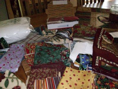 I have a medium flat rate box full (stuffed) of quilting fabric. Bits and pieces. there are some 4" squares and 6" squares. Also some larger peices. I am going to post a picture, but what is in the box may vary a bit depending on what I can 'squish' into the box.