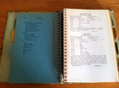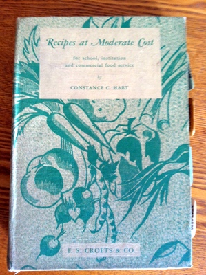 The other book I have up for grabs is "Recipes at Moderate Cost," 1938, by Constance C. Hart. This one was a textbook in institution administration for home ec students, and is full of recipes that make large amounts of food. Catering the family reunion this year? Here's some yummy old recipes that make A LOT!