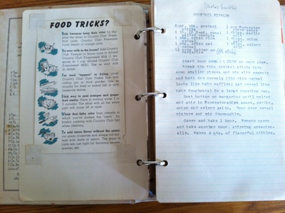 And one other interesting thing about this recipe binder: the recipe it contains is one for what looks like "Violet's Knerbels," or "Cocktail Nibbles." If you read it, you'll see it's for Chex Mix. Now when did that come out? Did they steal the recipe from my grandma? And what's a Knerble? :)