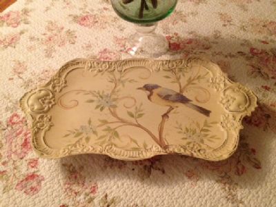 Hi Everyone! I have had this painted serving tray for a couple of years that I'm just not using at all. I'd love to trade it for a handmade large doily, embroidered or sewn something or other ( I do need a clothespin holder), a vintage silver something, I'm open to anything I can use. Let me know what you have.