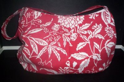 Here is a picture of the purse. I also have one of these in brown with a pink/brown polka dot lining. I make these in a smaller version, too. I have one that is black with a yellow bumble bee lining, brown & pink (as before) and red & white (as in the photo)and denim with red/white check lining.