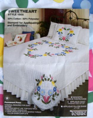 This applique quilt kit has never been opened, the photo is one I found on the internet. The finished size is 79" x 97". Will barter for anything handmade, mild soap, apron, kitchen towels, etc, let me know what you have to barter. Please no kits, I can't handle what I already have on my to do list