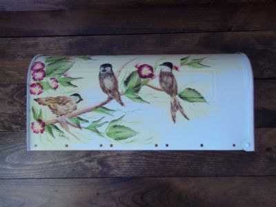 Unused handpainted standard size mailbox, all hardware inside box. I purchased this mailbox a few years ago, and it has been stored away. To small for all the packages hubby gets in the mail. Anyway, I will barter or sell this. Please make comment here then contact me. As this item is heavy, 6 lbs buyer and barter to pay shipping parcel post.