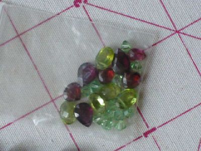 There are 20 Amythest stones, 6 large rose quartz, 6 small teardrop purple and 5 green teardrop stones can't remember the names of them. 10 Swarovski crystals tiny green stones.