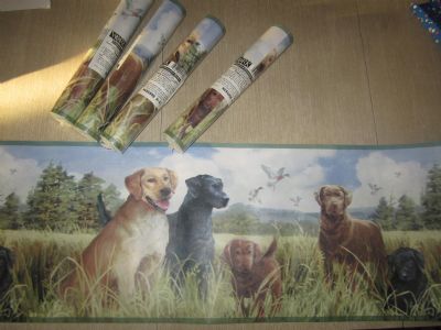 There are 4 unopened rolls of this prepasted wallpaper border and one opened (but not used-- a little tattered on the start edge). They are 5 yards each and the height is 9 inches. I'd love to sell these for $20 (including shipping) Email me if you're interested!
