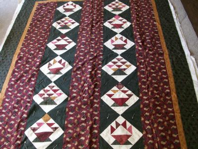 this quilt is a large lap size or twin. All quilt shop quality fabrics. It is pin basted and ready to be quilted. It has been in my 'to-do' for 7 years. I'm not going to get it done. $60 plus you pay shipping.