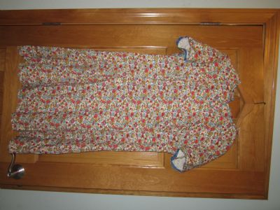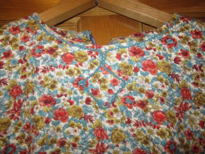 I bought this dress with a few other vintage (old!) summer dresses at an estate sale and though the sleeveless ones fit fine, for some reason this one is just a bit generously cut for me :) It's a generous size 14, with plenty of room in the bustline (too much for me) It's really cute, handmade by someone quite a while ago (don't know how old it is!) with a zipper in the back and a nice hem allowance.