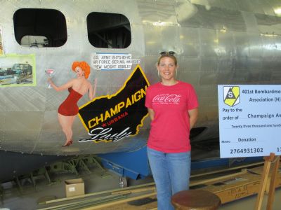 I tried to use the timer and get a picture with one of my cows, but they don't hold still. Here's one my husband took. I would have zoomed a little closer, but he wanted to get the plane too. (It's a B-17 bomber that is being built).