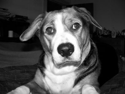 Here's my B&W. Had to shoot this one a couple of times under different lighting. This is daylight from a window with fill flash with the camera on portrait mode.