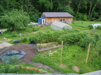 Looking down on last spring's garden from an upstairs window.