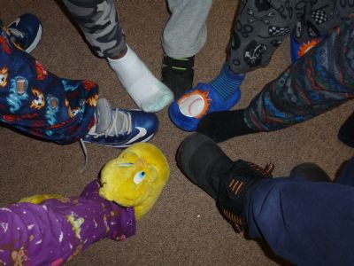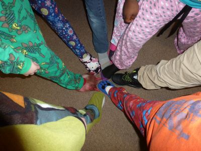 Here is my Looking Down. I photographed the feet of the second graders I work with on pajama day.