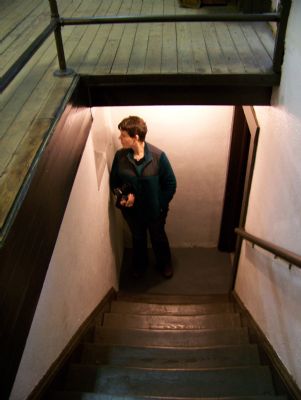 Here's another one from the museum. This building was built in the early 1900's. The first floor housed the police dept, the fire dept and the city offices. The second floor was the court room and the basement was the jail. This is Stephanie at the bottom of the steps leading to the jail.