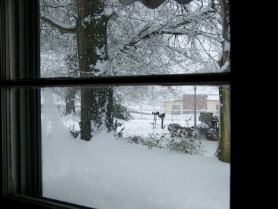 I have coffee with my husband by this window every morning (ok, so sometimes it's almost noon but...) this was my view morning. We had about 8 inches of snow, haven't had that much snow in a long time.