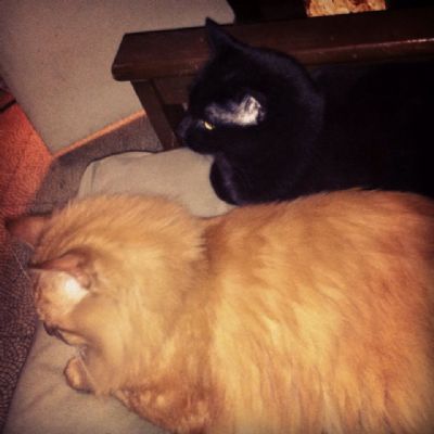 We have seven cats. I had a big, comfortable leather chair and all the cats loved it. I'd end up with cats on my arms, one around my neck, layed across my legs. So, we replaced the chair with a full size futon. Now I have a sliver of futon and six cats have most of it! The seventh cat is against the woodstove catching his whiskers on fire.