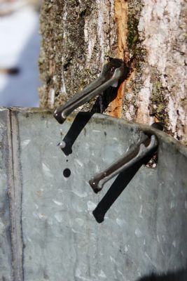 Here's my liquid picture - sap dripping in the sap bucket last spring - just waiting to be boiled down into yummy maple syrup!