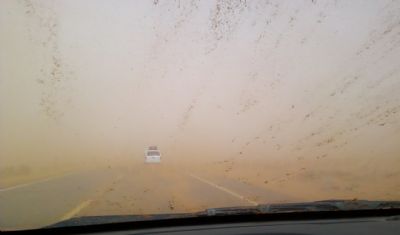 At time we were forced to creep along at 20 mph with headlights and hazard flashers on. Red sand EVERYWHERE . . . could not see the sky nor anything along the highway