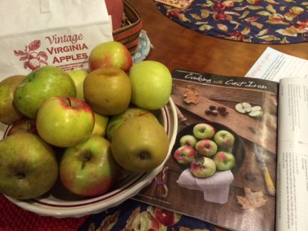 Hey Farmgirls, I just got home from a week in Virginia to visit with my family. On Thursday, we had time to stop off at Vintage Virginia Apples which is located in Albemarble County where my hometown of Charlottesville is located. They specialize in hard ciders and grow some of the heirloom apple varieties known for making good cider. There were boxes of different apples to mix and match so I bought back as many as I could carry in a bag since we were flying. Hehehe, on the security conveyor belt, the apples rolled out everywhere and we had to stop it and fetch them all up! I got some pretty weird stares from others!!