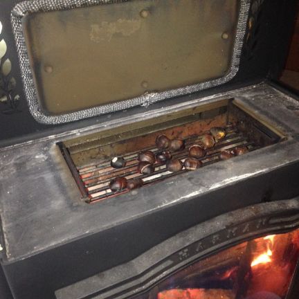 Betty I know there was another discussion on here about piping. Our old stove with the 8 in would smoke quite a bit, but that was likely due to a chimney problem. Most of the new stoves have 6 in pipe, maybe they could be fitted somehow with the 8 in; I don't know. We are having a very windy day today, and the fire hasn't smoked at all. Maybe have a pro look at it. That has made all the difference for us. Sorry to hijack the kitchen thread with stove discussions! And Sara, I am fairly sure a chestnut has to be cooked. It has an outer shell, and a very bitter inner skin (ask me how I know that!), but the nit inside is the consistency of a kind of a chewy sweet potato. A fun seasonal treat for sure.